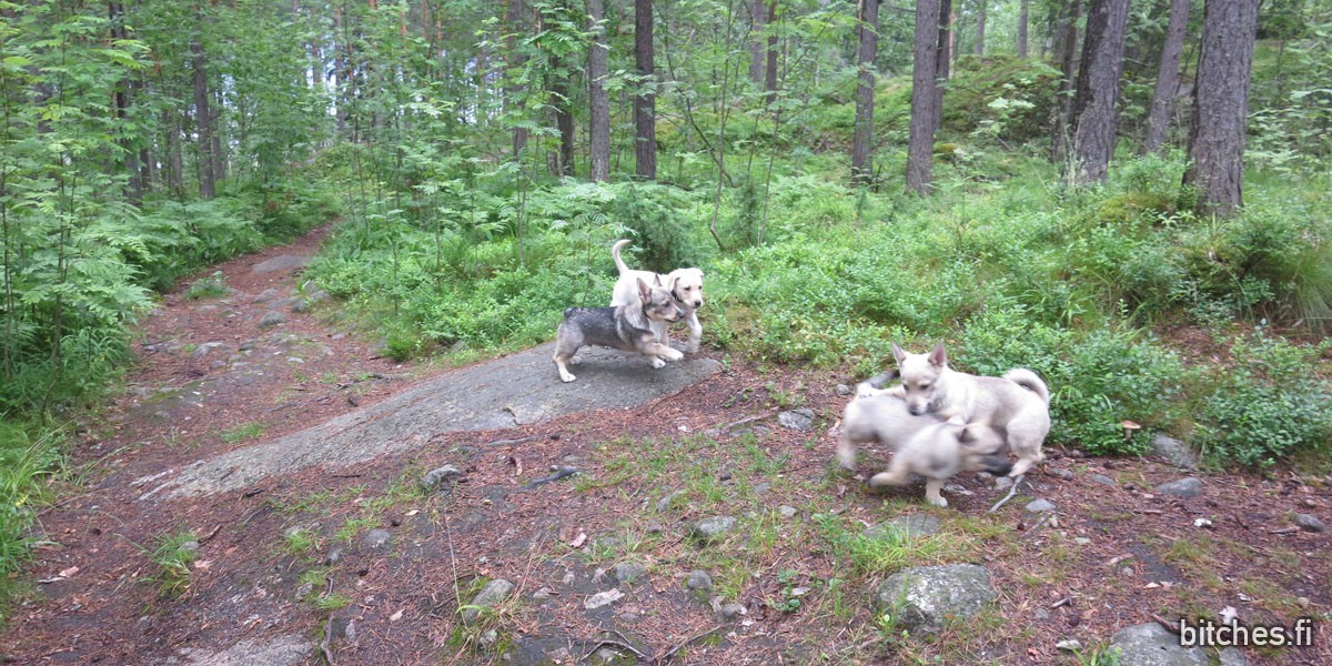 Uskokaa tai älkää, mutta jonkinlainen arki on asettunut uomiinsa. Me ruokitaan pentu kolme kertaa päivässä, korjataan kakkoja (enää) suunnilleen yhtä usein, käydään pentutreffeillä ja painitaan arjen tilanteiden kanssa, joissa onnistumalla pitäisi saada Dharmasta koulittua kunnon kansalainen.