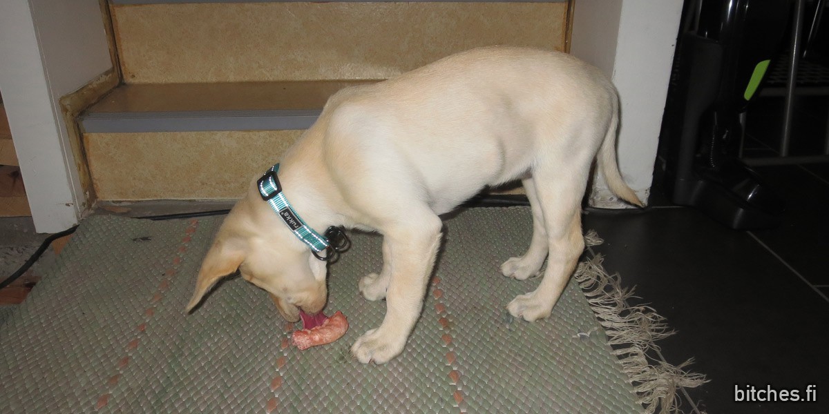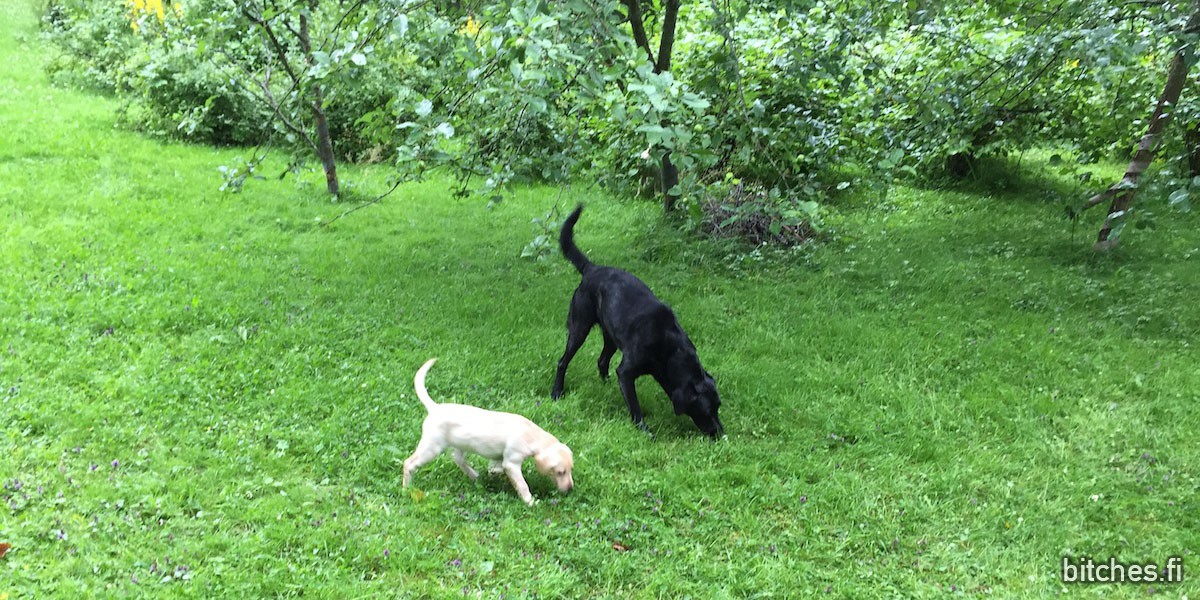 In the beginning we were afraid of everything: every stick that gets eaten, every piece of plastic or rock that she eats, but now we have better perspective. Especially labradors are greedy and they eat literally everything. So far all of it has come out eventually, and she’s still alive and happy. I guess we will get pretty far with common sense, consistency and confidence – and, of course, background information is also needed, but that we already have quite a lot.