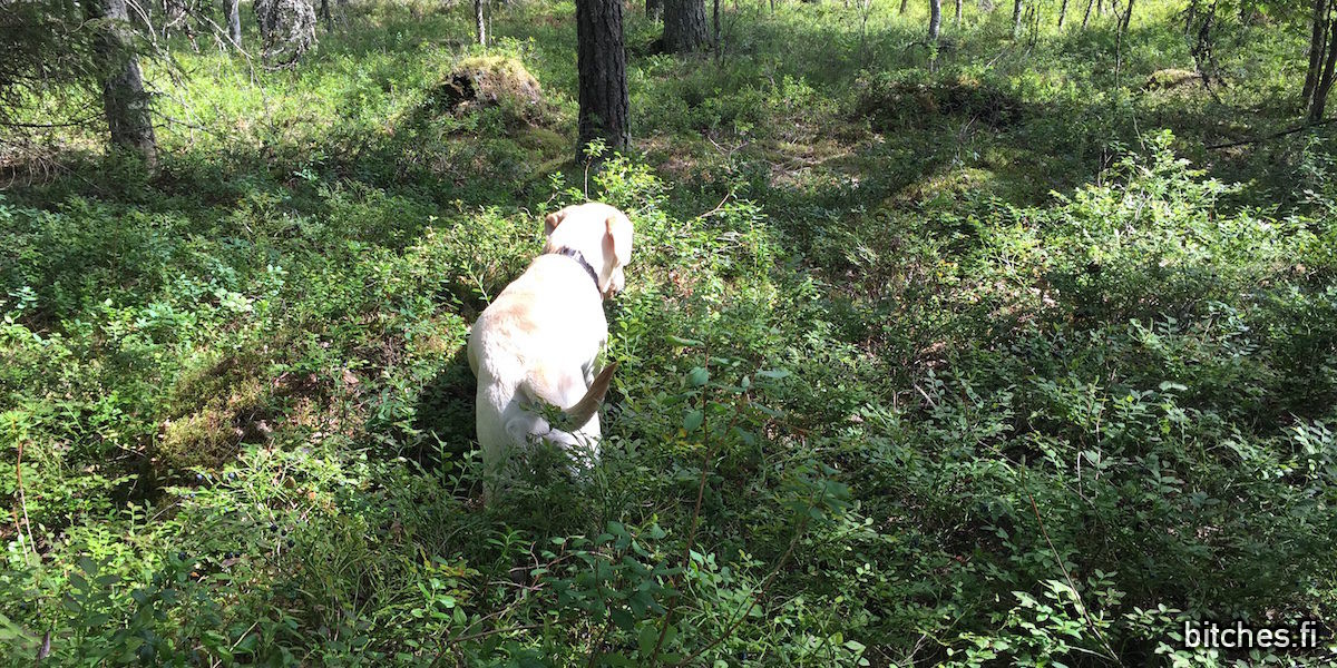 Labradorinnoutaja-ryhmä Facebookissa on jo muutaman viikon ajan täyttyneet kuvista ja videoista, kun labbikset syövät mustikoita suoraan puskasta. Otin jo vuosi sitten äitini mökillä samanlaisen videon kun Dharma oli vajaa 3 kuukautta vanha, ja nyt tällä viikolla otin uuden kun käytiin perinteisellä mustikanpakastusreissulla samaisessa “mummolassa”.