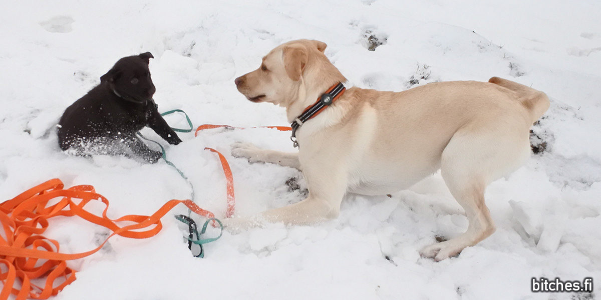 Vietimme Hilden ohjaajien (Hilden perheen äiti harrastaa Hilden kanssa PK-lajeja ja tytär agilityä) kanssa reilut pari tuntia jutellen kahvikupposten äärellä ja kotiinpalattuamme kuulimme kasvattajalta että saimme Joensuusta “ison kasan kehuja” ja että hän etsii juuri meidän kaltaisiamme koteja pennuille.