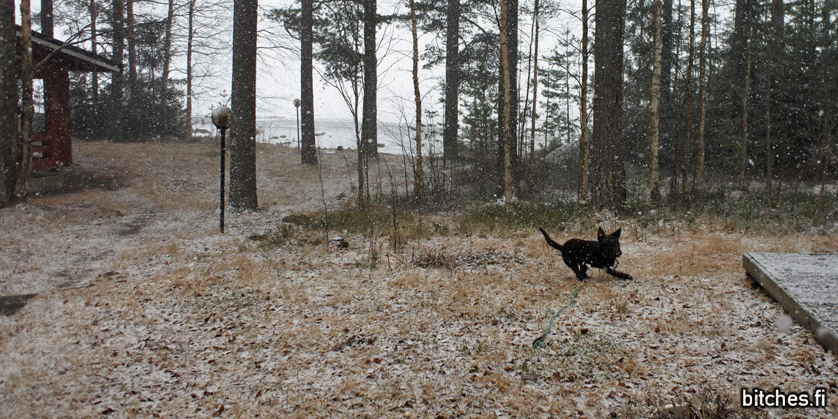 Ja juoksu jatkui kun pääsivät yhdessä Dharman kanssa pihalle – Dharma ja Bri eivät olleetkaan toviin päässeet yhdessä ihan kunnolla ulkona riekkumaan, niin tuli sellainen olo, että ainakin Dharma otti leikkihetkestä kaiken irti.